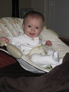 Lets see, where to start..hmmm. Well, we have just been having a lot of family time which is fantastic. I started back to work Last Monday and Holden got to start daycare. He loves it and all of the kids. I miss him most days, but it's so exciting to come home to him. It makes the days go really fast. This weekend I got to get away and have "mommy time" and Nick with his guy friends for Nate and Kaly's bachelor/ette parties. Such a fun time. Very little sleep, but well worth it. I also met a lot of new fun people. Here are a few recent pics of the little guy! Tomorrow he's officially three months old. Yippee. Its going by so fast.